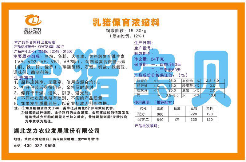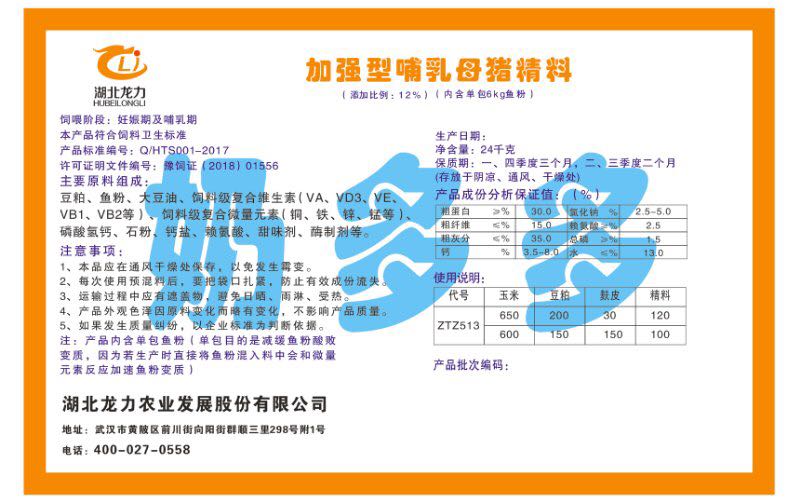 湖北龍力農(nóng)業(yè)發(fā)展股份有限公司坐落于武漢市黃陂區(qū)前川街向陽街群順三里298號附1號。公司成立于2014年6月,公司自成立以來把“創(chuàng)全球最大養(yǎng)豬綜合服務(wù)”為企業(yè)愿景。致力于打造教保料品牌”作為公司發(fā)展的明確目標(biāo)。公司一直致力于豬營養(yǎng)的研究和開發(fā),積極與國內(nèi)外高校和科研機(jī)構(gòu)合作,推廣養(yǎng)豬技術(shù)、動(dòng)物營養(yǎng)新概念,向世界農(nóng)牧企業(yè)學(xué)習(xí)與合作。公司采用國內(nèi)先進(jìn)的生產(chǎn)工藝,選擇高精度電子配料秤,高均勻度、無殘留混合機(jī)等先進(jìn)設(shè)備....